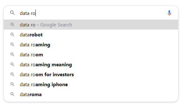 There is no ability to perform predictive search. That is, when you start typing the result "Data r" the search query will provide a list of potential queries with results such as "DataRobot" NOTE: This is a feature of both Lucene from 8+ years ago and Solr.